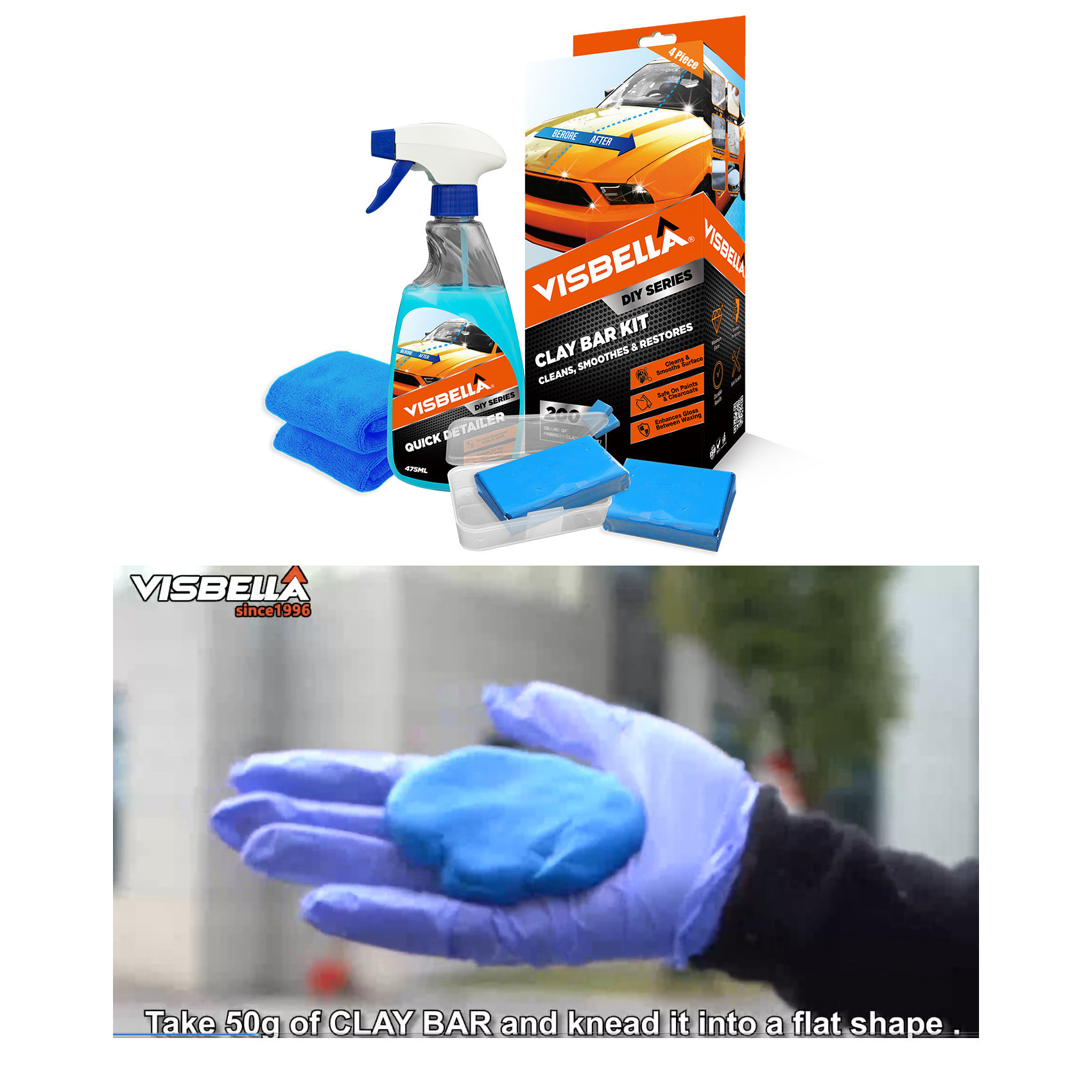Visbella® Clay Bar Kit removes these contaminants, among others, before they become too deeply embedded into your vehicle´s paint.Make your car's finish look and feel like new again. Regardless of where you live or where you park your car, your car's paint isexposed to a variety of potentially damaging contaminants. Paint over spray, acid rain, tree sap, airborne particles, bird droppings, and brake dust all present danger to the integrity of your car's finish.