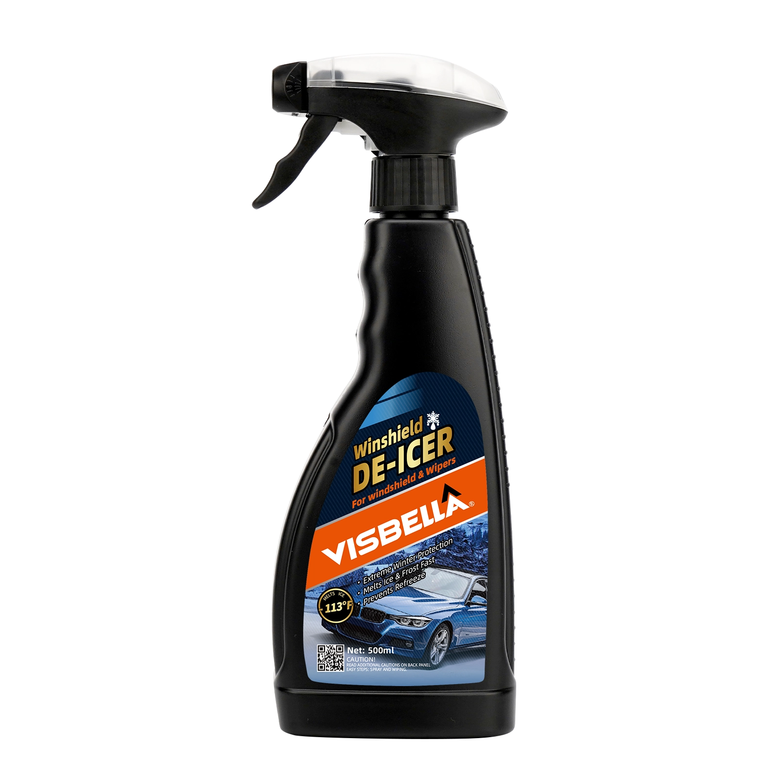 Visbella® Windshield De-Icer can be used for windshields, locks, mirrors,handrails, and other critical areas. This non-smearing, high volume spray works fast and sprays every time. Will not harm enamel paints, chrome, rubber, or concrete and helps to preventice forming when used in advance. Increasesvisibility and makes driving safer.