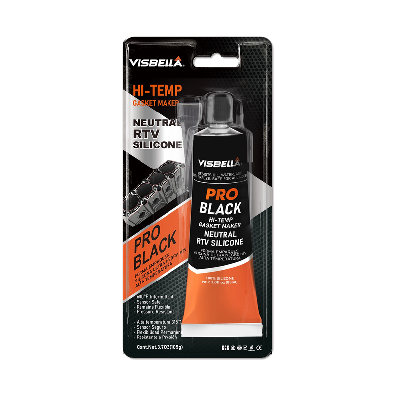 Visbella® High Temperature RTV Silicone is designed for automobile production of bonding and sealing. It is a one component RTV silicone sealant, forms to any size or shape gasket. It is resistant to both temperature and migration caused by thermal cycling. Can withstand temperature from -80°F up to 600°F(315°C). Ideal fro timing covers, intake manifolds, exhaust manifolds, cylinder heads, carburetors and more. It cures completely without excitant odor release. Acid&Neutral solidified into elastic rubber strip. Dries securely as a gasket.