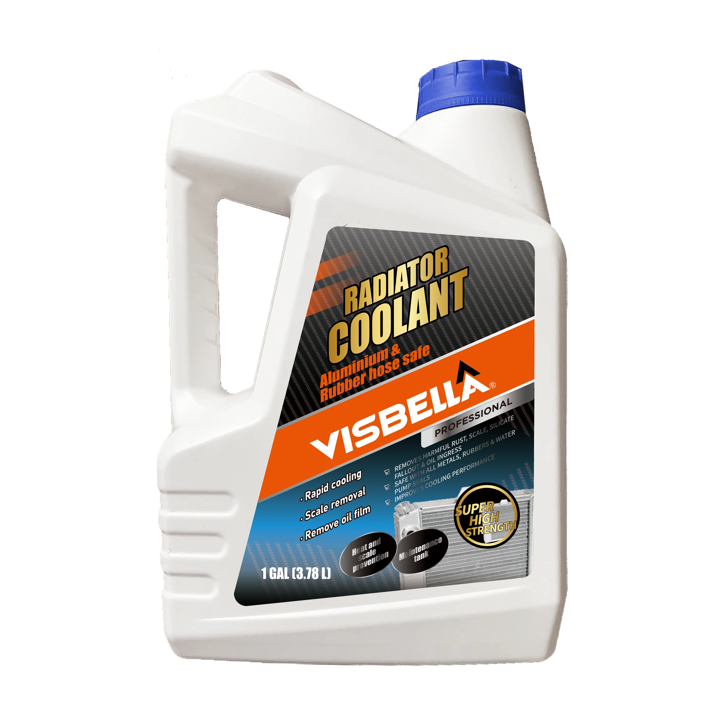 Visbella® Radiator Coolant is specially formulated to replenish and condition old Anti - freeze. It can work effectively all year round as an anti-overheating element. It's fortified inhibitors protect the co ling system against rust and scale, promoting an effective transfer of heat from engine to radiator. Extends the life - span of the radiator, engine parts and protects the cooling system.