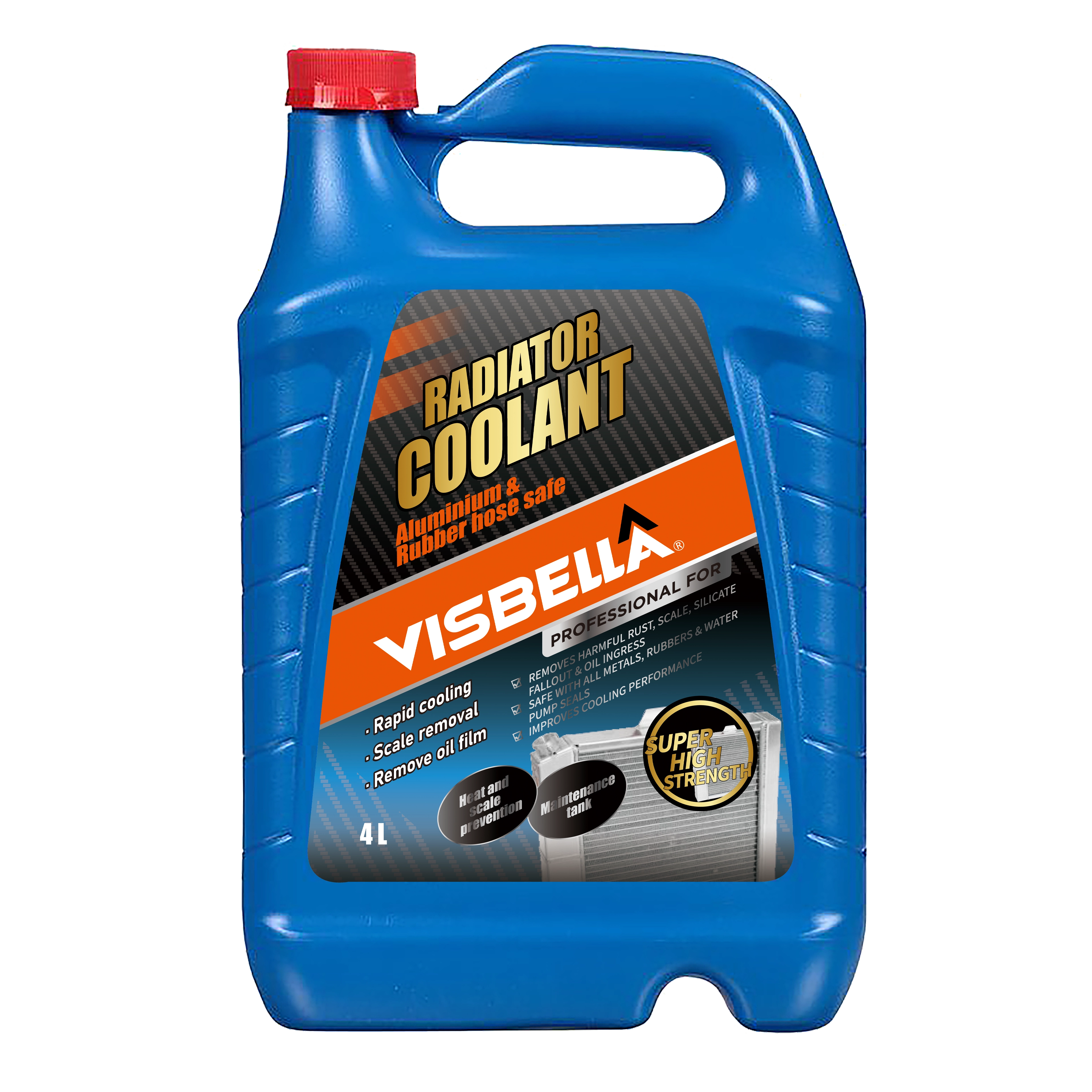 Visbella® Radiator Coolant is specially formulated to replenish and condition old Anti - freeze. It can work effectively all year round as an anti-overheating element. It's fortified inhibitors protect the co ling system against rust and scale, promoting an effective transfer of heat from engine to radiator. Extends the life - span of the radiator, engine parts and protects the cooling system.