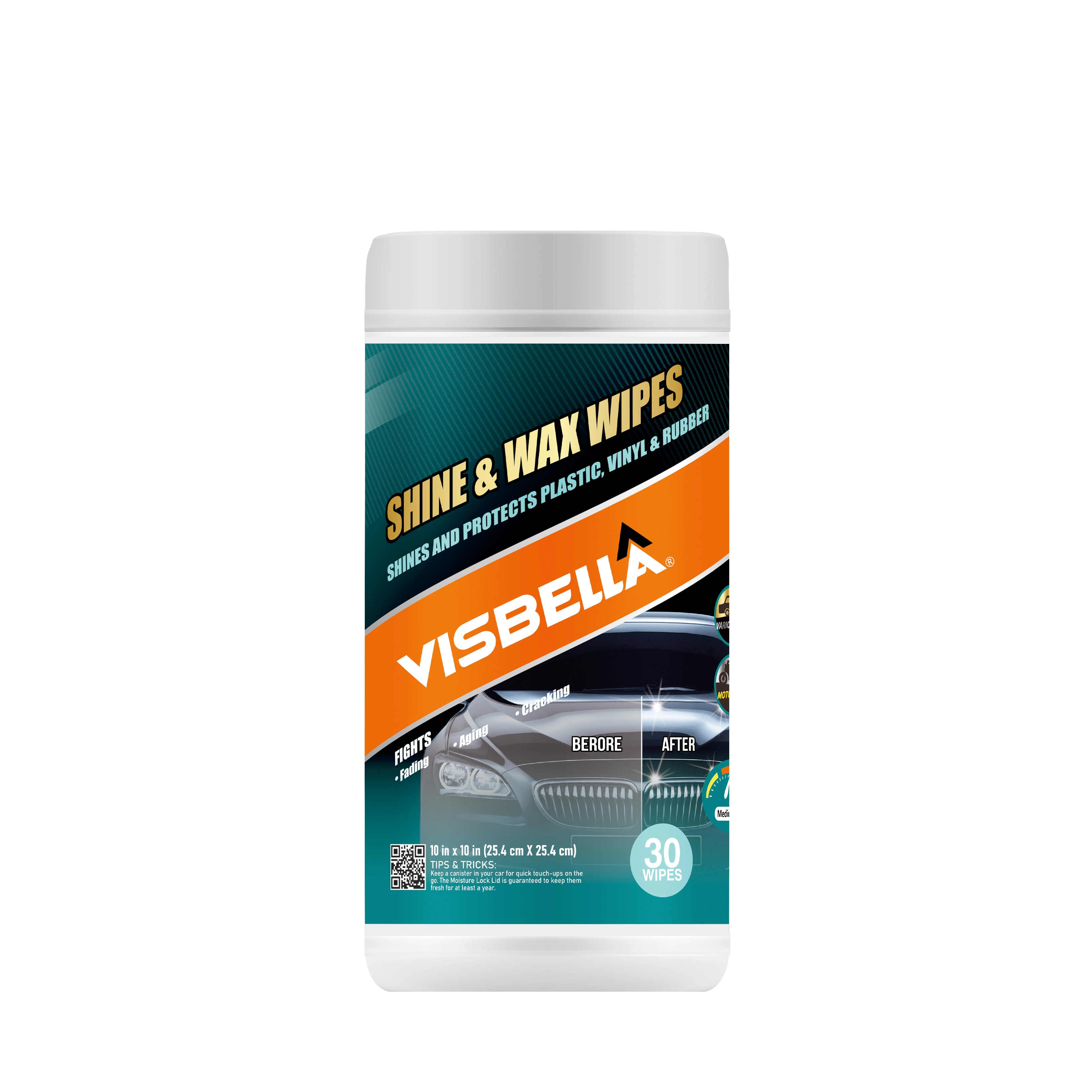 Visbella® Shine&Wax Wipes Cleans,Shines and protects plastic vinyl and rubber from UV damage.