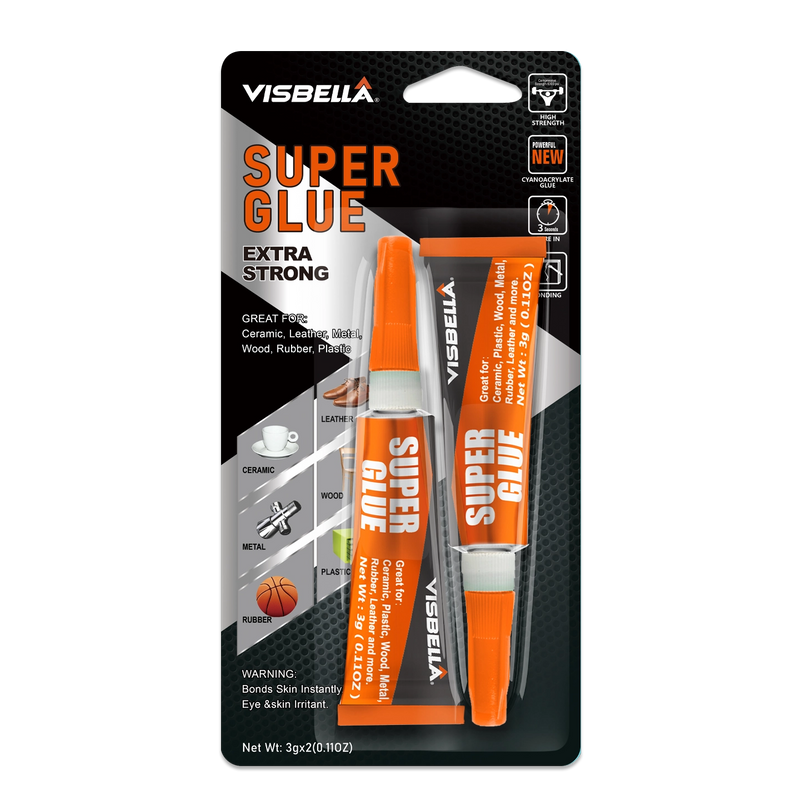 Visbella® Super Glue is ideal fast dry glue for bonding various materials including metal, rubber, ceramic, leather, wood, glass, paper, most plastics and others.